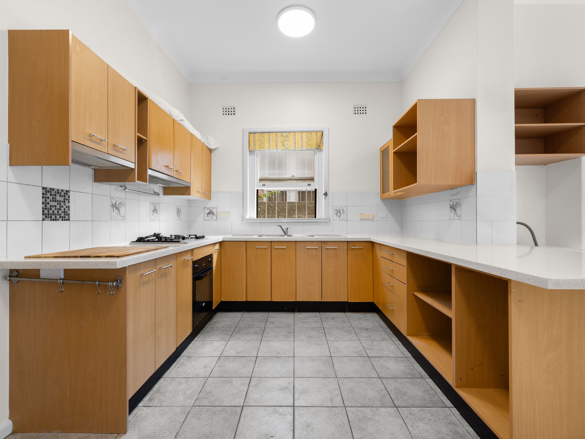 - Modern kitchen, open plan living/dining.